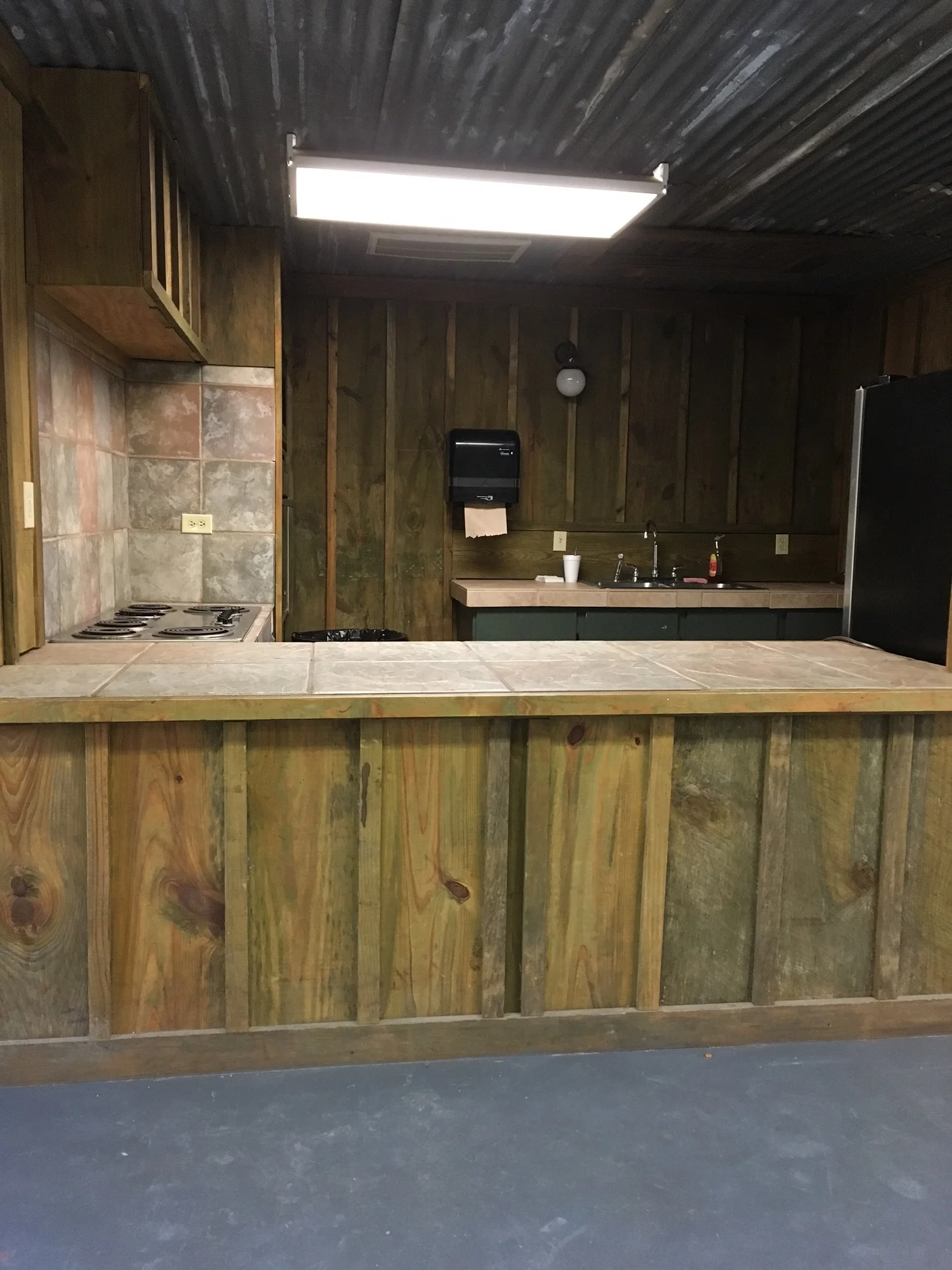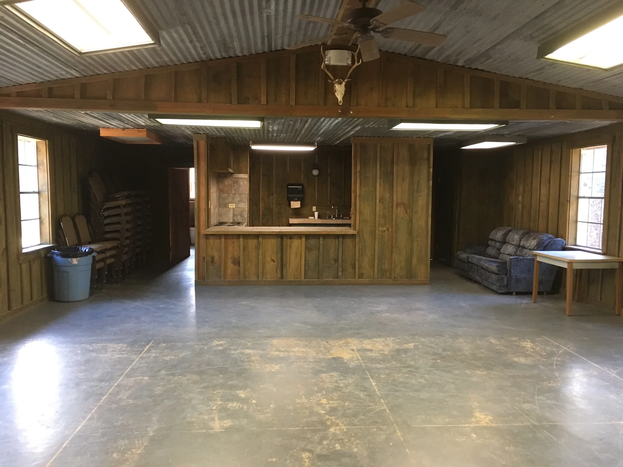 This facility has three cabins with bunk beds sleeping 14, 20 and 16. Separate bath house and 900 sq ft meeting room with small kitchen. Bring your own pots and pans to cook and serve. Grill is located outside.